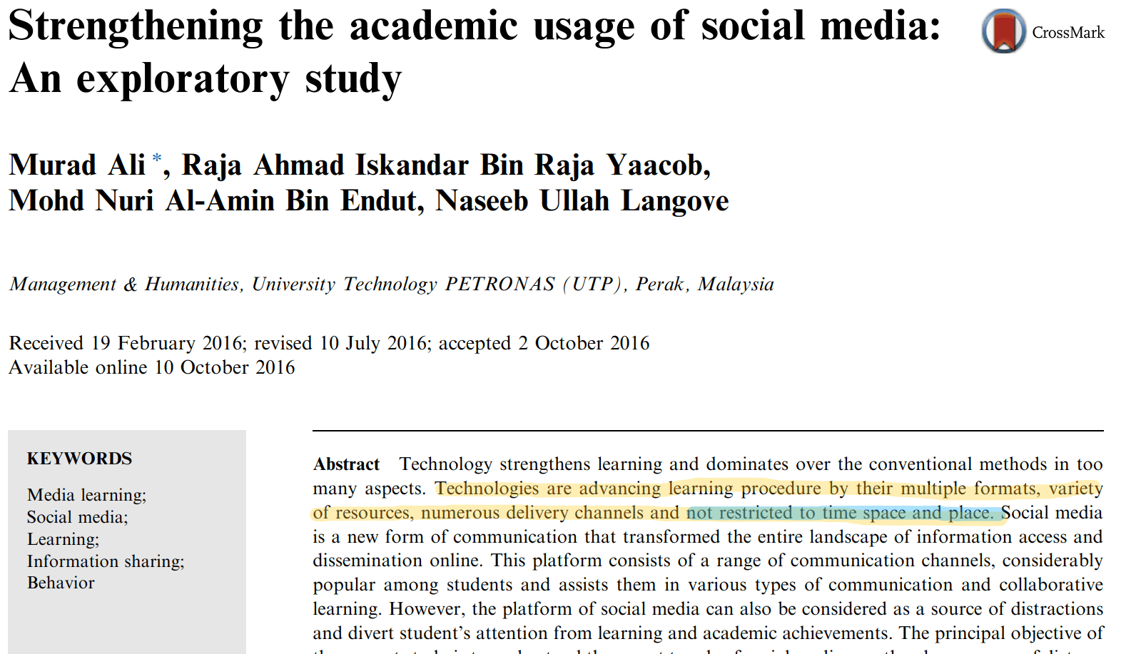 It occurs to me that the act of learning has profoundly changed because students have all the information in the world at their fingertips (article above lightly speaks to the depth of this). They learn about each other including what they had for breakfast or what they saw at the mall. They inform and teach each other about common interests and have a broader exposure to new ideas and interests. The article cited below speaks to “learning procedure…not restricted by time and space.” That statement alone speaks to how profoundly the younger generations learn and how they view the act of leaning.